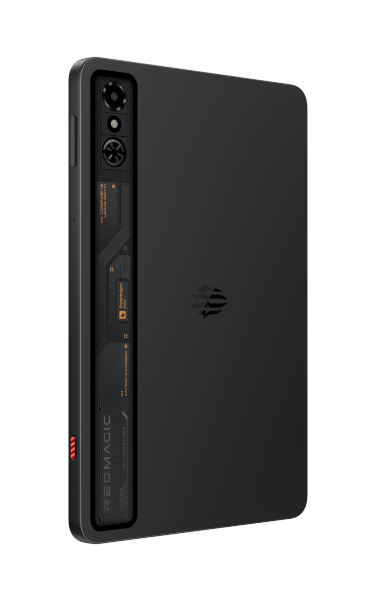 Das verbaute 2.4K OLED-Panel mit 9,06 Zoll kann mit bis zu 165 Hz aktualisieren. Es erreicht eine Spitzenhelligkeit von 1.600 Nits, reagiert rasant auf Touch-Eingaben und nimmt 90,1 Prozent der Oberseite des nur 4,9 mm dünnen Gehäuses ein. Ebenfalls im Inneren sitzt ein mit bis zu 80 W ladender Akku mit 8.200 mAh, der für bis zu 5,5 Stunden Spielspaß langen soll. Als Betriebssystem ist RedMagic OS 10.5 samt Mora AI Assistant 2.0 installiert.