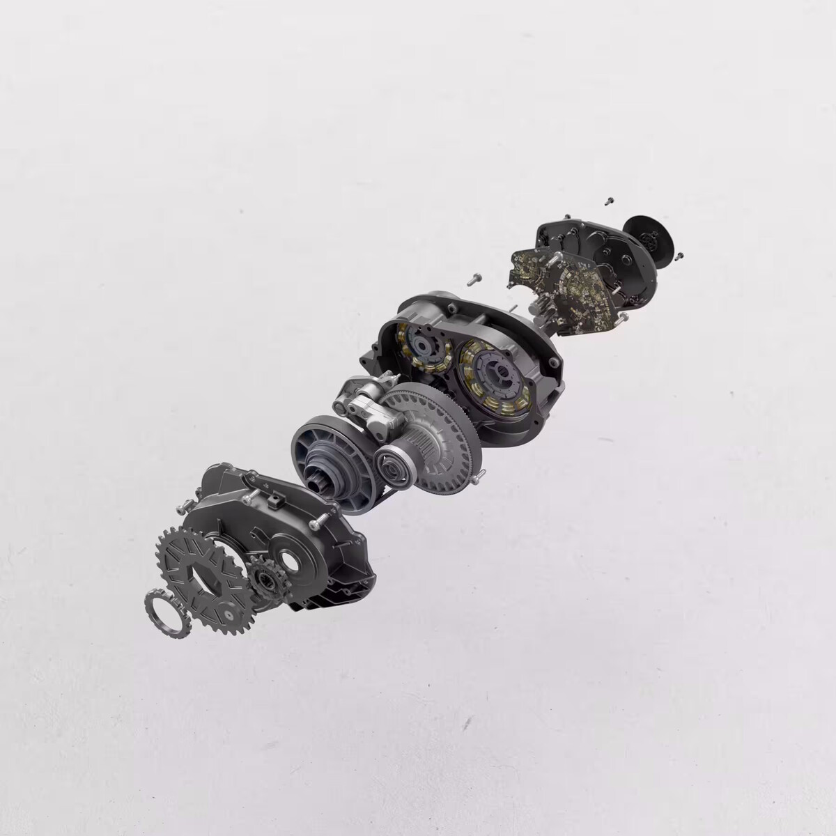 Ausgestattet ist das Fahrrad mit einem Mittelmotor mit einem Drehmoment von 65 Nm und einer Nenndauerleistung von 250 Watt. Die Spitzenleistung wird mit 600 Watt angegeben. Es ist ein CVT-Getriebe verbaut, welches ein Übersetzungsverhältnis von 265 Prozent mitbringt und automatisch agieren kann - so können Nutzer eine Trittfrequenz von zwischen 40 bis 90 Umdrehungen in der Minute einstellen, das Übersetzungsverhältnis wird dann automatisch eingestellt.
