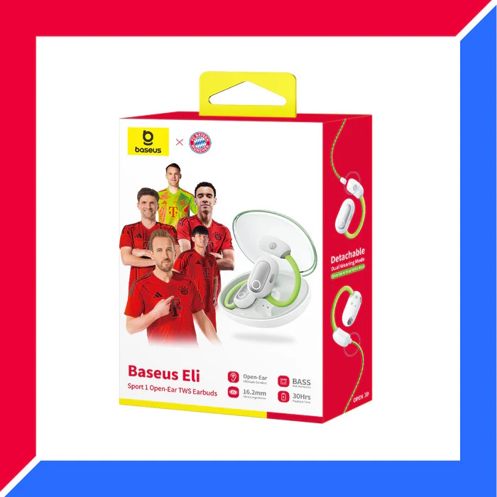 Die Baseus Eli Sport 1 sind auch in der FC Bayern-Version offene Kopfhörer. Diese werden somit nicht wie In-Ear-Kopfhörer in den Gehörgang eingeschoben, sondern nur auf das Ohr gerichtet. Eine solche Bauform ermöglicht zwar keine Abschirmung von störenden Umgebungsgeräuschen, allerdings kann genau dies auch der Vorteil sein: Die Umgebung lässt sich ohne einen speziellen Modus wahrnehmen, was bei der Nutzung im Straßenverkehr sehr wichtig sein kann.