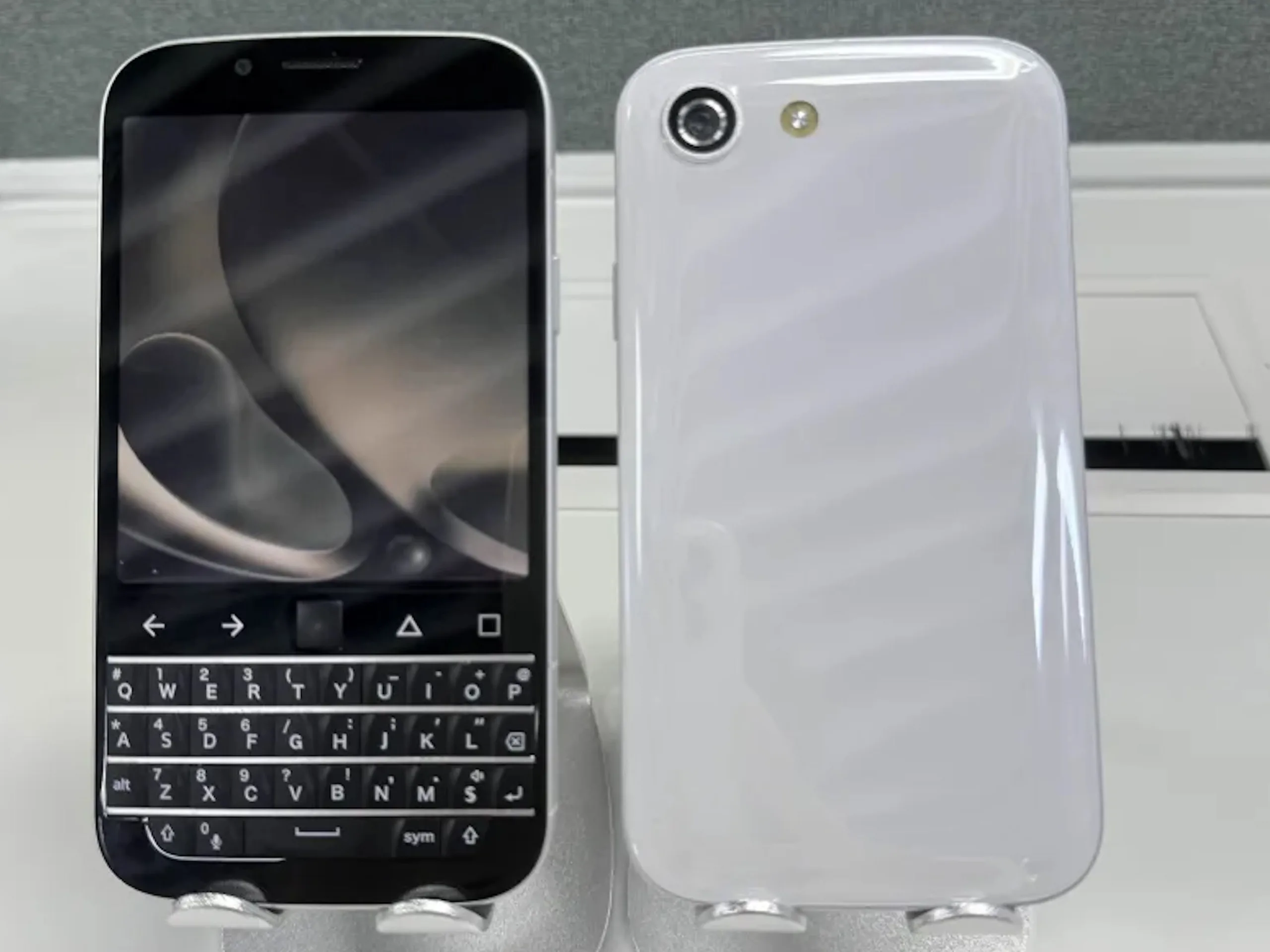 Zu sehen ist das Smartphone in der mehr oder weniger erwarteten Form: So gibt es eine Tastatur, welche insgesamt vier Reihen mitbringt, ein Ziffernblock ist wenig überraschend nur über eine Zweitbelegung nutzbar. Eine Eingabe-Taste und Tasten für die Großschreibung gibt es. Über der Tastatur und damit noch unter dem Bildschirm sind dabei noch vier Tasten und noch eine Art Touchpad zu sehen. Die Tasten ersetzen dabei offenbar die On-Screen-Navigationstasten, damit dürfte sich also Vor- und Zurücknavigieren lassen. Zinwa hat nicht nur Bilder der Vorder-, sondern auch der Rückseite geteilt. Zumindest die aktuelle Version des Zinwa Q27 kommt mit einer glänzenden Rückseite. Genau dies wird von der Community auch kritisch bemerkt, einige Nutzer geben sogar an, dass die Anmutung zumindest auf den Fotos eher billig wirkt. Inwieweit die fertige Version des Q27 denn auch mit einer glossy Rückseite kommt, ist unklar.