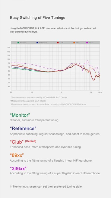 Im Inneren der grauen Ohrhörer verbergen sich gleich zwei Treiber – ein neu entwickelter Balanced Armature Hochtöner aus einer Lithium-Magnesium-Legierung und ein dynamischer Treiber mit einem Durchmesser von 13 Millimetern für Mittel- und Tieftöne. Um den Klang an die eigenen Vorlieben anzupassen, können Nutzer in der Moondrop Link Smartphone-App zwischen fünf Tuning-Profilen auswählen. Neben SBC und AAC unterstützen die Moondrop Supersonic auch den neuen, effizienteren LC3-Codec sowie Sony LDAC, um Musik mit bis zu 32-bit bei 96 kHz und 990 kbit/s zu streamen.