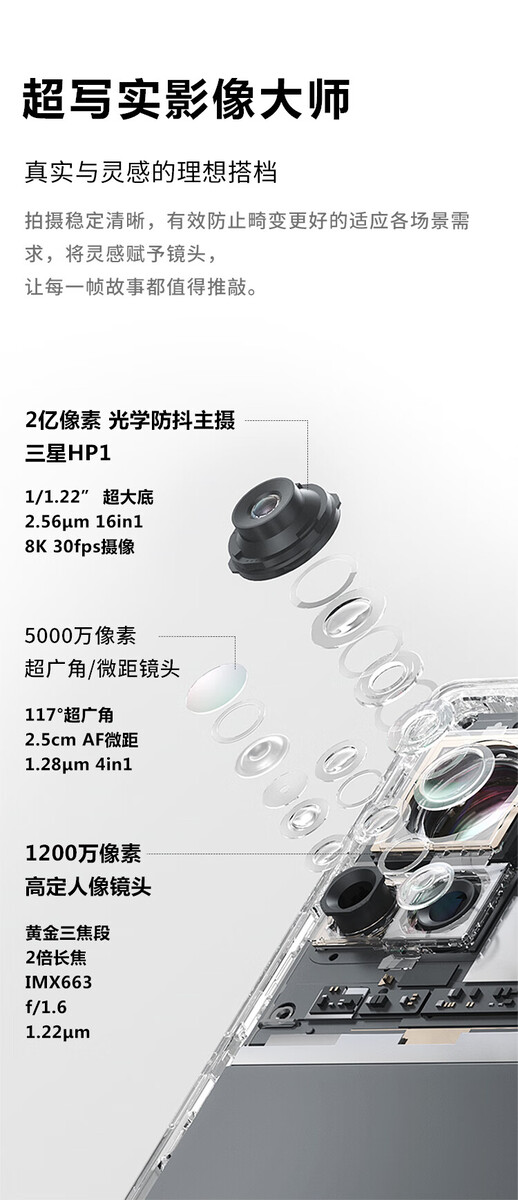 Bereits bekannt war, dass die 200 Megapixel Hauptkamera auf dem Samsung Isoecell HP1 Sensor mit 1/1.22 Zoll Größe, 16 in 1 Pixel Binning und 0,64 Mikrometer Pixelgröße basiert. Der Sensor kann 8K-Videos mit 30 Bildern pro Sekunde oder aber 4K-Videos mit maximal 120 fps aufzeichnen. Vervollständigt wird die Triple-Kamera von einer Ultraweitwinkel-Kamera mit 50 Megapixel, 117 Grad Blickwinkel und 4 in 1 Pixel Binning. Auf welchem Sensor diese basiert, wird nicht genannt. Dafür ist aber erwähnt, dass diese Kamera auch für Makro-Aufnahmen mit 2,5 cm Brennweite genutzt werden kann. Als Dritte im Bunde ist eine Telekamera mit 12 Megapixel und Blende f/1.6 basierend auf dem Sony IMX663 verbaut. In der Front setzt Motorola dazu auf eine Selfie-Kamera mit 60 Megapixel und 4 in 1 Pixel Binning.
