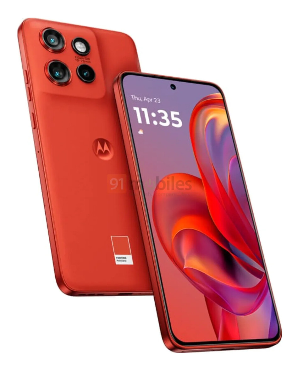 Zudem enthüllt man auch das vermeintliche Design des neuen Motorola Edge 50 Neo. Dass dieses in vier Farben angeboten werden soll, ist bereits seit dem letzten Leak bekannt. Nun zeigt sich das Smartphone in der Pantone-Farbe Poinciana samt rückseitig aufgedrucktem Pantone-Label auf mehreren geleakten Bildern. Im Vergleich zum Vorgänger Motorola Edge 40 Neo (ca. 320 Euro bei Amazon) ist unter anderem das größere Kamera-Modul mit drei statt zwei Linsen erkennbar. Das Display fällt zudem nun aber flach aus und hat keine abgerundeten Seiten mehr.
