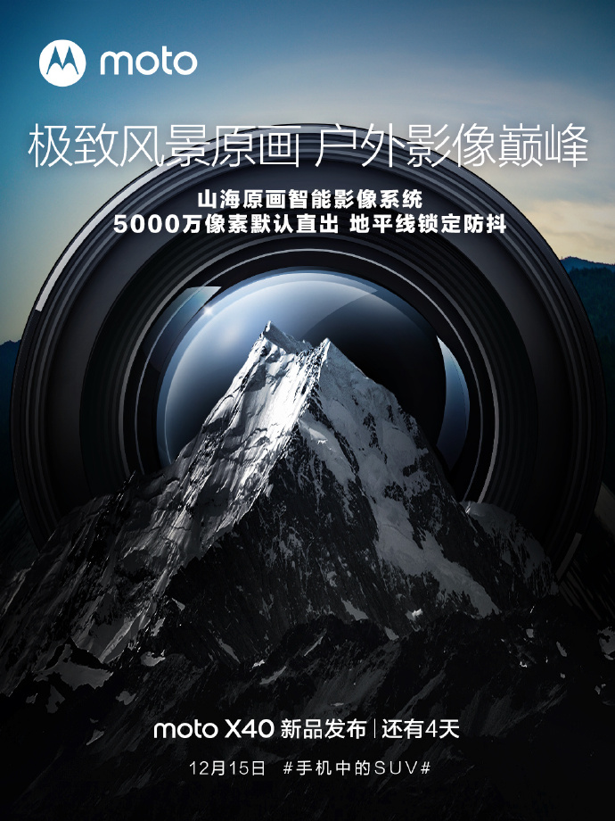 Die Teaser-Bilder konzentrieren sich auf ähnlich Vorzüge, wobei Motorola auf Weibo auch angibt, dass das Moto X40 virtuellen Surround-Sound unterstützt, unabhängig davon, welche Kopfhörer zum Einsatz kommen. Motorola bestätigt, dass das Moto X40 eine 50 Megapixel Hauptkamera mit optischer Bildstabilisierung (OIS) besitzt.