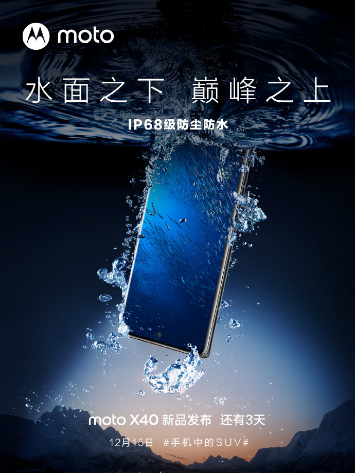 Das Motorola Moto X40 war schon vor einigen Tagen auf hochauflösenden Renderbildern zu sehen, nun hat Motorola auf dem chinesischen sozialen Netzwerk Weibo die unten eingebetteten Promo-Videos und Teaser-Bilder geteilt. Interessanterweise vermarktet Motorola die IP68-Zertifizierung als zentrales Verkaufsargument.