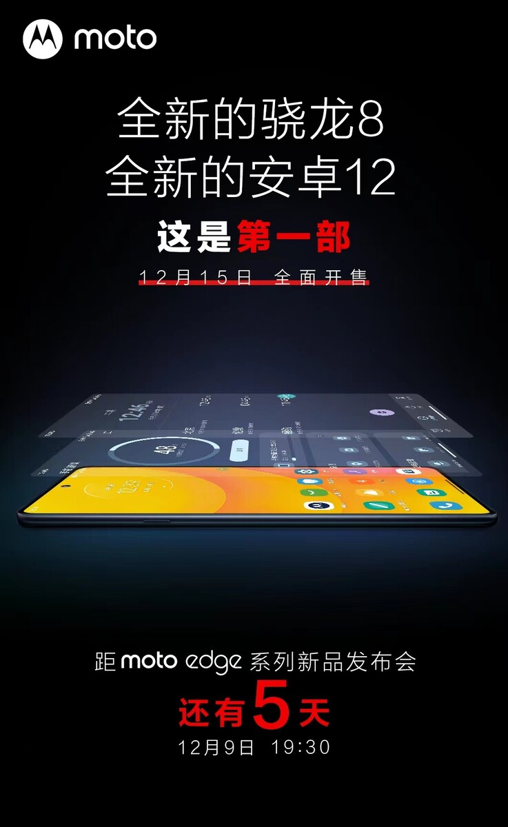 Das Moto Edge X30 wird am Donnerstag, dem 9. Dezember offiziell vorgestellt, Motorola hat nun schon vorab die unten eingebetteten Teaser-Bilder auf dem chinesischen sozialen Netzwerk Weibo geteilt. Dass das Flaggschiff auf den brandneuen Qualcomm Snapdragon 8 Gen 1 setzen wird war bereits zuvor bekannt, nun bestätigt Motorola auch, dass das Gerät mit Android 12 ausgeliefert wird.