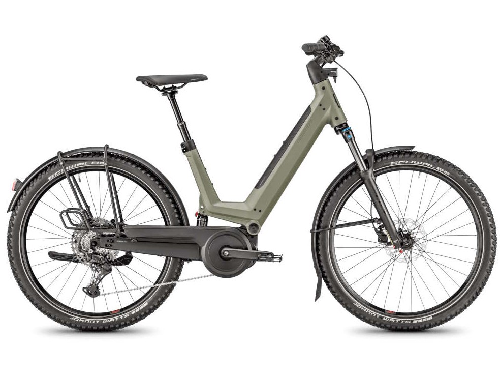 Moustache bietet mit dem J. all ein neues E-Bike an, welches sich für quasi alle Gelegenheiten eignen soll. Tatsächlich ist die Ausstattung umfangreich, das Fahrrad dürfte damit auch in quasi allen Situationen eine gute Figur machen. Mögliche, etwa durch den Dämpfer und die Federgabel verursachte Einschränkungen in der Fahrdynamik dürfte dabei der Elektromotor glattziehen. Ausgestattet ist das Modell mit einem Bosch-Mittelmotor der Performance Line mit einem Drehmoment von 75 Nm. Der Bosch PowerTube-Akku misst in der Standard-Version 500 Wh, gegen einen Aufpreis von 200 Euro liegt die Kapazität bei 625 Wh. Das Bosch Kiox 500-Display verspricht eine optimale Übersicht.