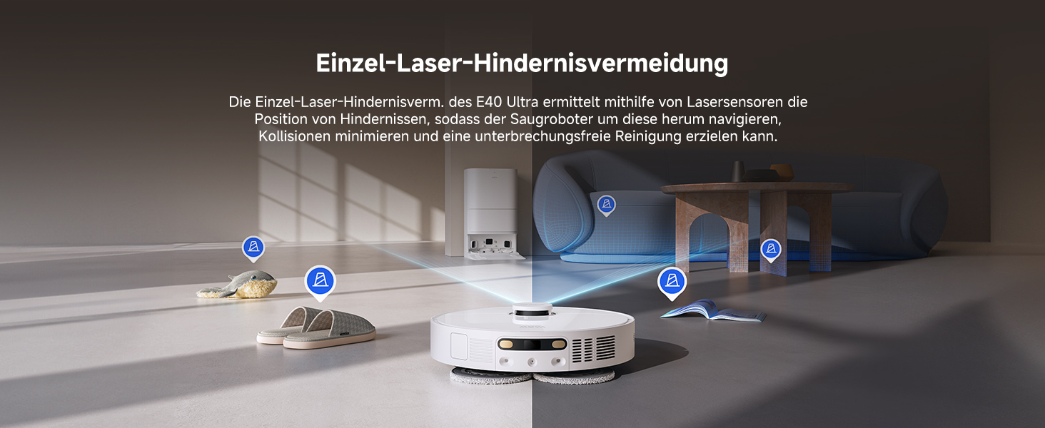 Geworben wird mit einer besonders hohen Saugleistung, diese wird mit 19.000 Pa angegeben. Eine hohe Saugleistung kann im Prinzip etwa bei der Reinigung von Teppichen sehr vorteilhaft sein, allerdings sind solche Angaben zur Saugleistung wie im Prinzip alle Herstellerangaben natürlich mit einer gewissen Vorsicht zu genießen. In der Basisstation kann der eigentliche Saugroboter dann abgesaugt werden, der Staubbeutel in der Basisstation soll 3,2 Liter aufnehmen können. Vorhanden ist eine Seitenbürste, die auch relativ unauffällig gegenüber Haaren sein soll. Eine Rollenbürste ist vorhanden, Teppiche solen mithilfe von Ultraschall erkannt werden - dann können die Wischmopps angehoben und die Saugleistung erhöht werden.
