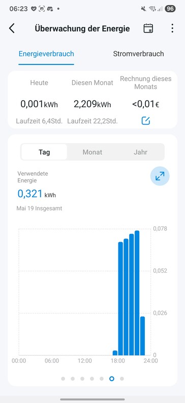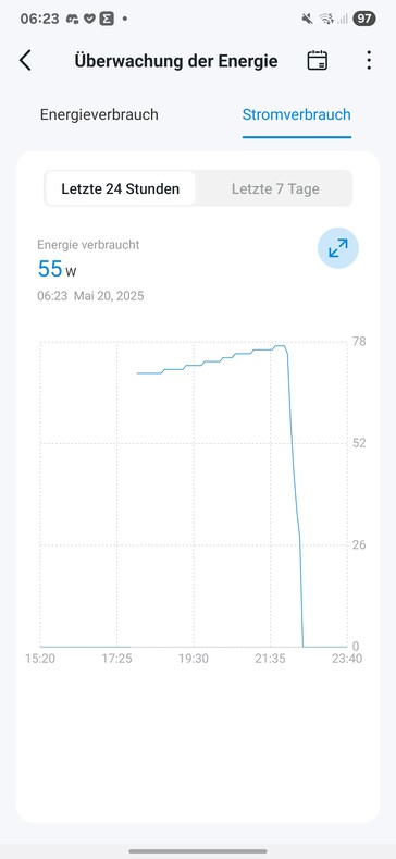 Das Ladegerät schafft im Test eine Ladeleistung von etwa 70 Watt. Die auf der Testrunde verbrauchten 321 Wh werden in etwa 6 Stunden nachgeladen. Der Scooter zeigt auf dem Display und in der App den Ladestand und die verbleibende Ladezeit an.