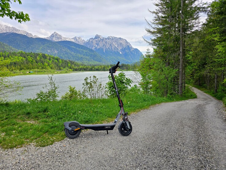 Wir haben mit dem Ninebot F3 Pro eine Tour über 20 Kilometer am Stück gemacht. Dabei musste der Scooter im Sport-Modus Anstiege überwinden, teils auf losem Untergrund fahren und es gab wenig Möglichkeiten zur Rekuperation. In diesem Szenario erreichen wir die Werksangabe nicht, sondern lediglich die Hälfte. Im Alltag sind aber Reichweiten von 50 Kilometern realistisch, wenn die Rekuperation genutzt wird.