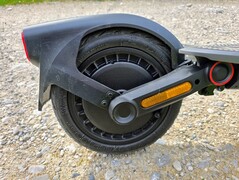 Unterstützt wird die mechanische Bremse durch eine elektrische Bremse über den Motor. Die Kombination agiert feinfühlig und effizient. Das Hinterrad kann genau an der Blockiergrenze gehalten werden. Dabei bleibt der Scooter stabil und steuerbar.