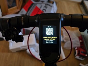 Der nächste wichtige Hinweis findet sich auf der Schutzfolie des Displays. Dort steht, dass der Scooter für mindestens drei Sekunden an das Ladegerät angeschlossen werden muss, sonst lässt er sich nicht aktivieren. Außerdem führt ein QR-Code zur Smartphone-App.