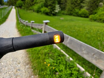 Am Heck sitzt die Beleuchtung im Schutzblech, der F3 Pro hat eine Bremslichtfunktion. Auch Blinken ist möglich. Die LED sitzen in den Lenkerenden und strahlen nach vorne wie hinten. Bedient werden alle Lichtfunktionen über die Multifunktionseinheit am Lenker. Pluspunkte gibt es dafür, dass die Blinkertöne in der App deaktivierbar sind.