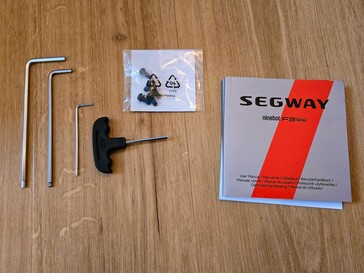 Weiteres Werkzeug zum Nachdrehen von Schrauben liegt im Karton, ebenso das Ladegerät, eine bebilderte Anleitung in verschiedenen Sprachen und die Konformitätserklärung. Der F3 Pro ist in Deutschland zulassungsfähig.