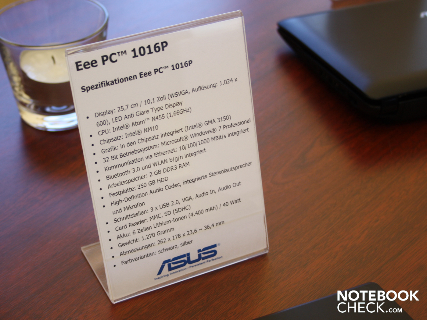 Der Hersteller hat die geschäftliche Kundschaft entdeckt. Wer in Zeiten knapper Kassen seine Mitarbeiter mit günstigen aber laufzeitstarken Netbooks ausrüsten will, der muss sich jetzt nicht mehr vor dem rundlichen Consumer-Style fürchten. Der 1016P (10.1-Zoll) ist wie ein typisches Netbook ausgerüstet (Atom N455), hat aber mit Bluetooth 3.0, Gigabit-Ethernet und zwei Gigabyte DDR3 RAM Premium-Merkmale.