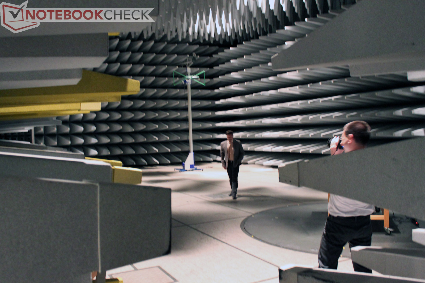 Neben diversen mechanischen Tests (Fall-, Vibrations-, Klima-, Drucktests uva.) finden wir hier einen gigantischen Faradayschen-Käfig, in dem die Strahlenemissionen diverser Hardware geprüft werden. Auch ein Audio-Labor bekommen wir zu sehen, in dem die Lautstärke einzelner Produkte in verschiedensten Betriebsmodi gemessen wird. Da alle Messeinrichtungen internationalen Standards entsprechen, können die Labors auch für die Überprüfung externer Produkte genutzt werden. Rund 70% der Kapazitäten werden für Fujitsu-eigene Produkte verwendet.