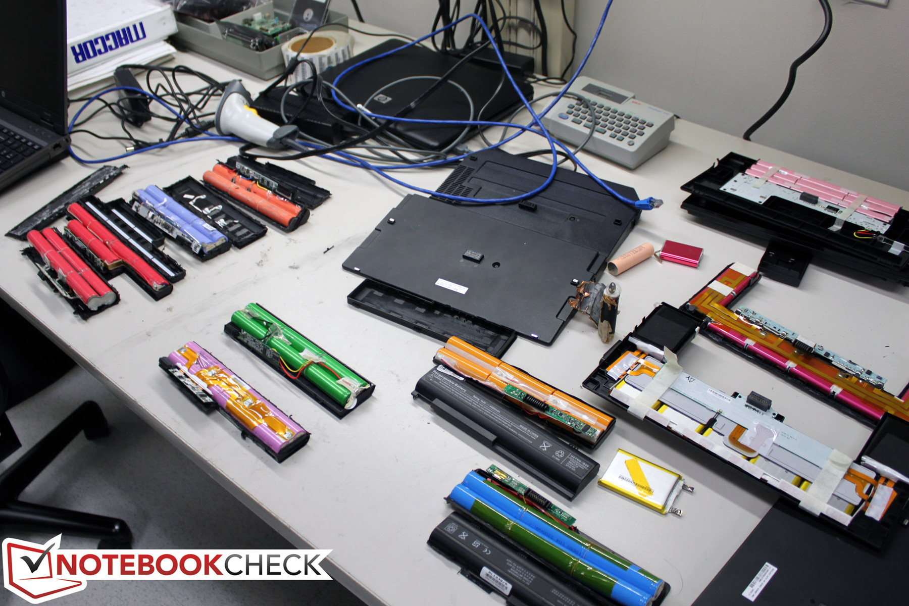 Im Nebenraum wurden verschiedenste Lösungen kontrolliert zerstört, sprich überhitzt oder überbeansprucht, bis die Zellen ein Raub der Flammen wurden. Damit lassen sich ebenso Rückschlüsse auf das Funktionieren diverser Sicherheitsfeatures (Ladeelektronik, Überhitzung,...) ziehen, die HP in seinen Akkulösungen integriert.