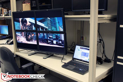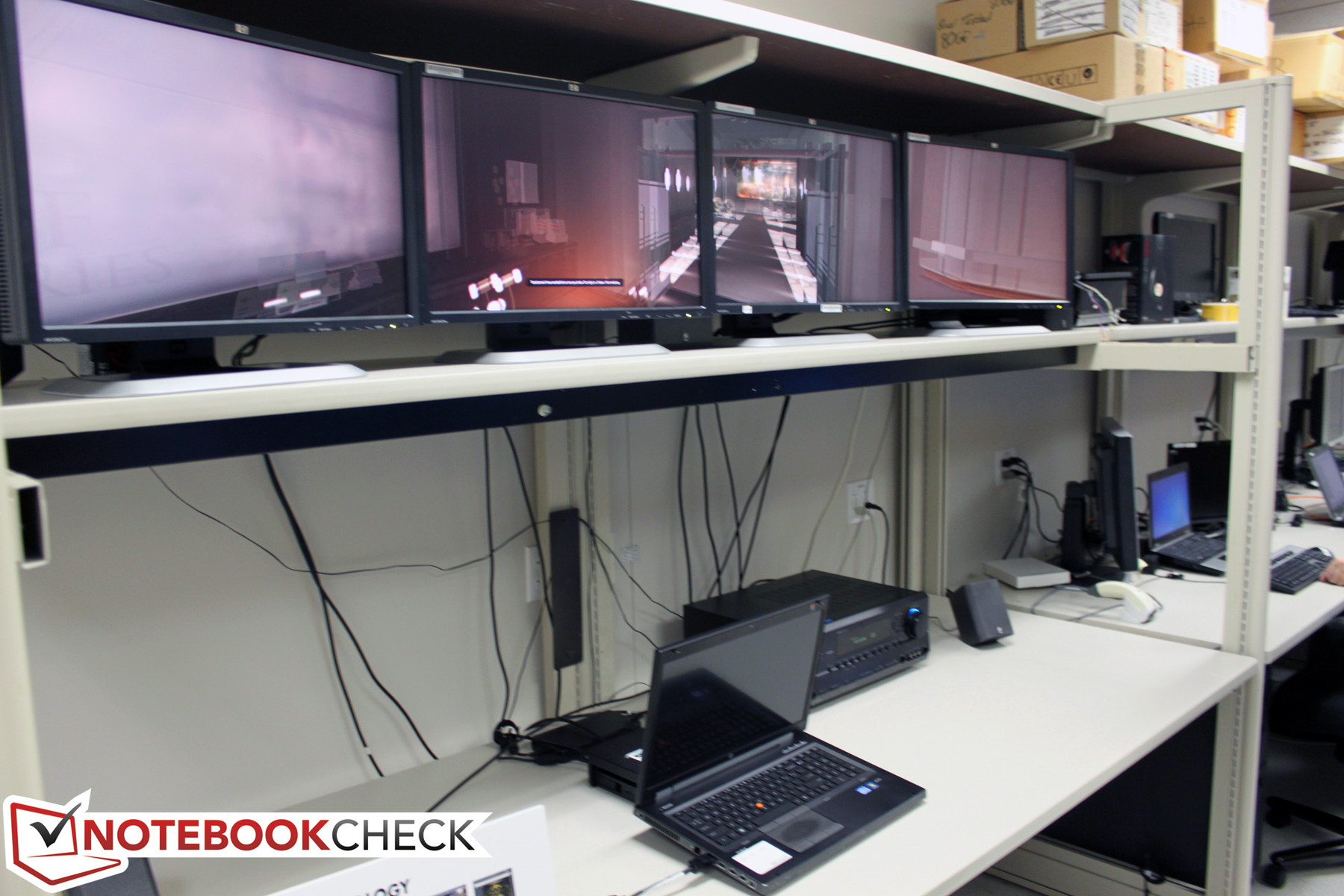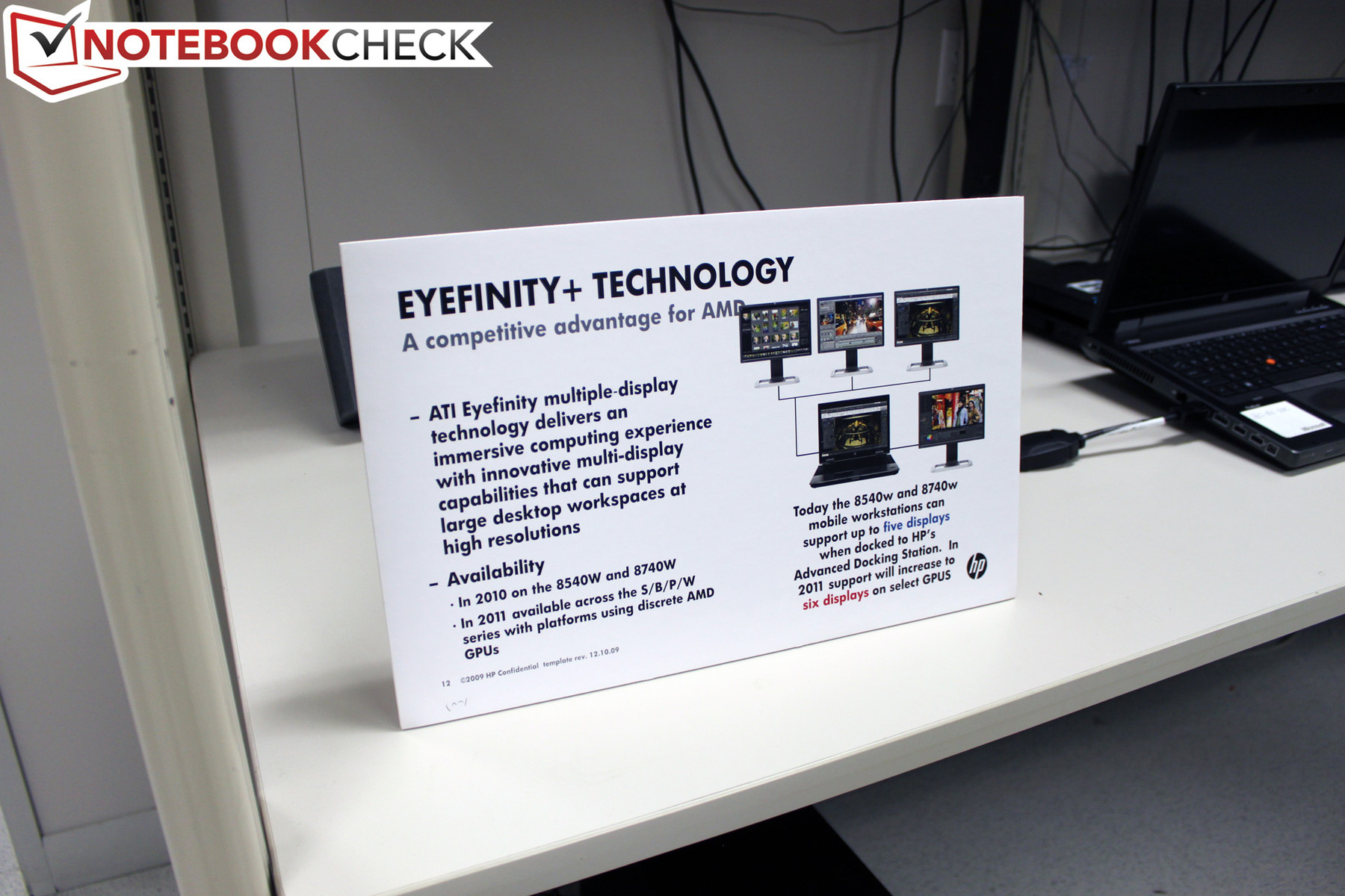 Die Werbetrommel wurde überdies auch für Eyfinity gerührt, eigentlich eine Technologie von AMD, mit deren Hilfe bis zu 5 Displays angesteuert werden können. Speziell im Visualisierungseinsatz oder im Bank- und Börsenbereich könnte diese Technologie spannend sein. Verfügbar ist Eyfinity bei allen aktuellen Elitebooks, die auf eine dedizierte AMD GPU zurückgreifen.