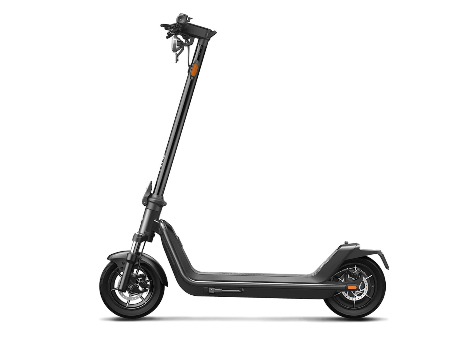 Es kommen 10,5 Zoll große Reifen zum Einsatz, wobei es sich um gummierte, schlauchlose Luftreifen handelt. Dazu kommt eine Federung an der Front, welche mit einem Federweg von 45 Millimetern aufwarten kann und Stöße entsprechend abmildern können soll. Vorne und hinten sind Scheibenbremse verbaut, zudem steht auch eine Rekuperation zur Verfügung. Der 522 Millimeter breite Lenker soll einen höheren Komfort bieten, der nun quasi hinter vor den Knöcheln des Fahrers befindliche Ladeport soll schwieriger zu beschädigen sein.