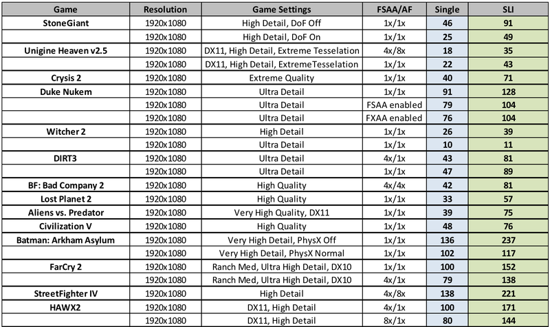 Bis auf Metro 2033 und Crysis 2 (DX11) sind dadurch alle aktuellen und anspruchsvollen Spiele in Full HD Auflösung mit maximalen Details flüssig spielbar. Mit einer ausreichend schnellen CPU läuft z.B. Duke Nukem Forever, Witcher 2, Dirt 3, BF: Bad Company 2 und Bulletstorm in 1920x1080 und höchster Detailstufe flüssig. Mehr Details zu den Spielebenchmarks finden Sie bei den Detailwerten am Ende dieser Seite oder im Test der GeForce GTX 580M Seite.