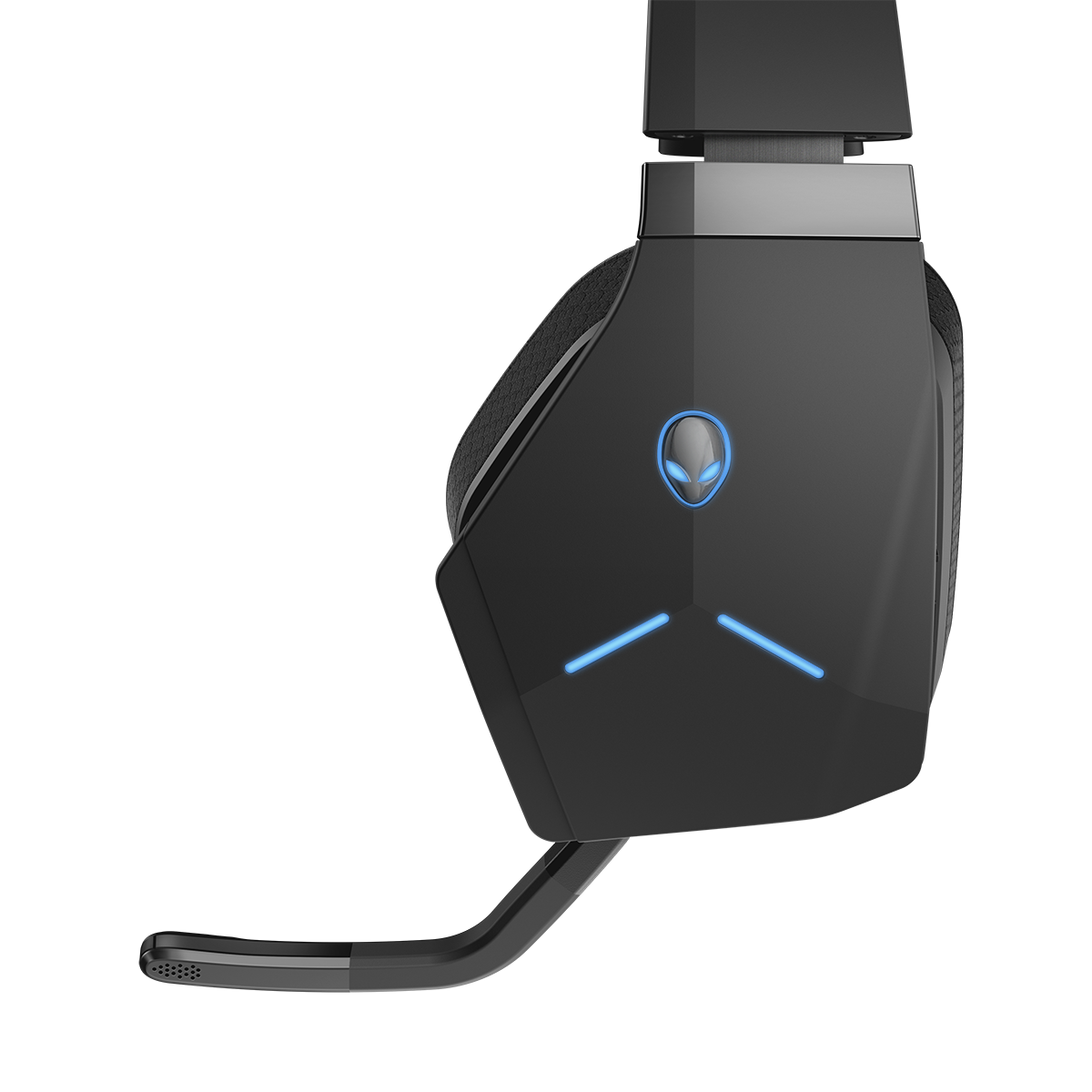 Das ausklappbare Mikro soll kristallklare Kommunikation ermöglichen und Noise-Cancelling beherrschen, das Umgebungsgeräusche aktiv unterdrückt und Stimmen verstärkt. Beim Ausklappen wird das Mikro automatisch aktiviert, beim Hochklappen wieder abgeschalten, der Status wird durch eine rote LED angezeigt. Dem futuristischen Iconic Alienware Design wird mit beleuchteten Alienware Logos auf jeder Seite des Hörers und zwei LED-Streifen nachgeholfen, die mit Hilfe von AlienFX, welches derzeit von mehr als 140 Spielen unterstützt wird, alle 6,8 Millionen Farben wiedergeben können.