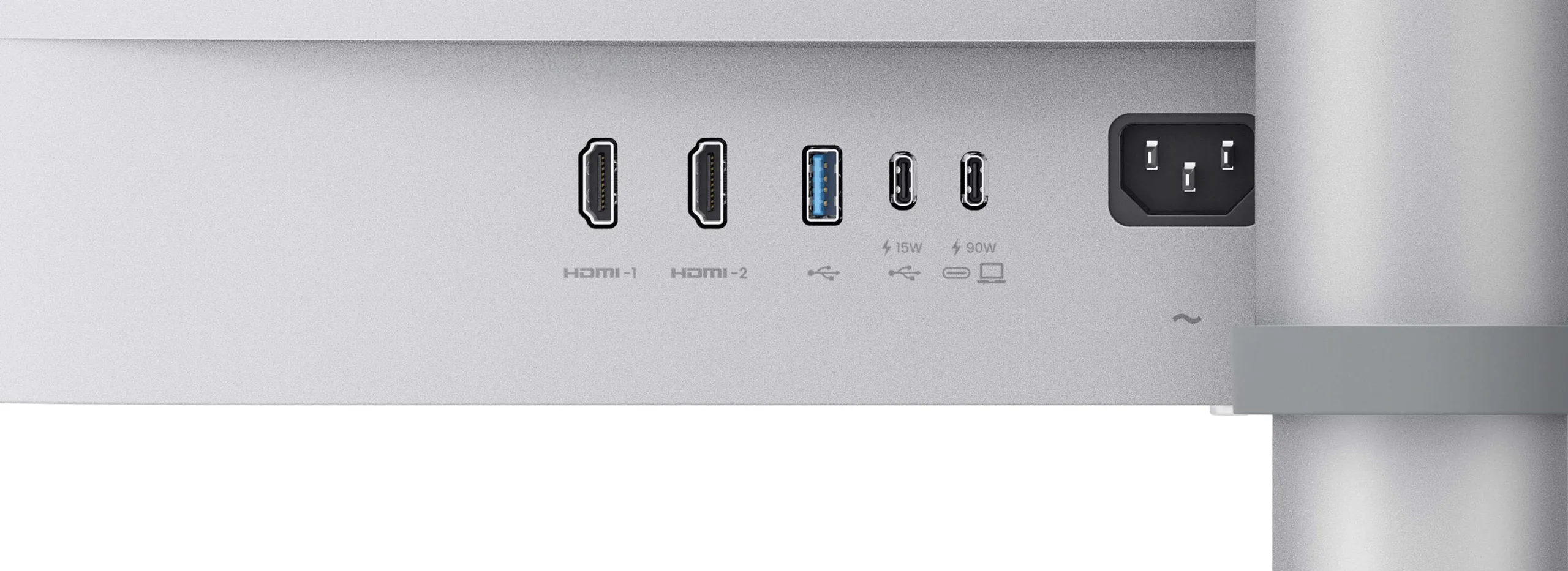 Ergonomiefunktionen stehen bereit, so sind die Verstellung in der Höhe, der Neigung und die Drehung um 90 Grad und damit die Hochkant-Nutzung (Pivot) möglich. Es steht USB Typ C bereit, wobei über diesen Anschluss ein kompatibler Zuspieler über USB PD gleich mit bis zu 90 Watt versorgt werden kann. HDMI und DisplayPort fehlen ebenso wenig wie zusätzliche USB-Anschlüsse für die Anbindung etwa von Maus und Tastatur.