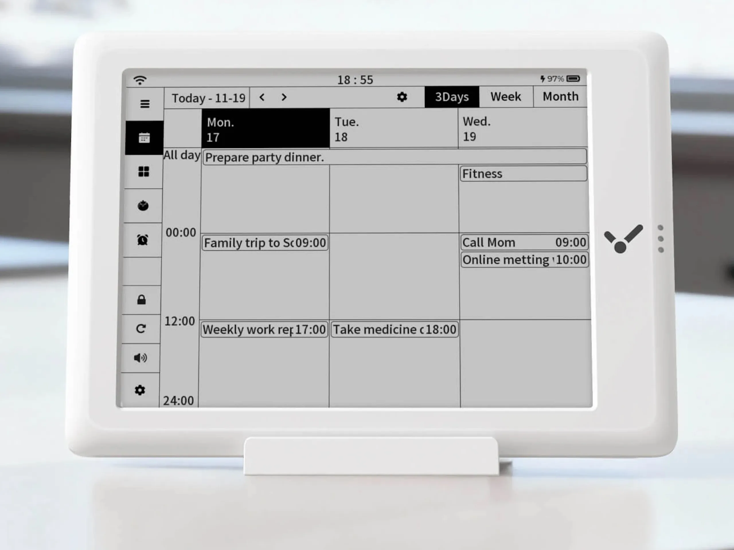 Auf dem Display lassen sich Kalendereinträge anzeigen, dabei wird auch etwa die Synchronisation mit Google-Diensten oder Outlook unterstützt. Der Funktionsumfang ist dabei nicht auf die Anzeige von Kalendern beschränkt, stattdessen lassen sich auch etwa die Luftfeuchte oder Temperatur anzeigen. Alarme lassen sich ebenso nutzen wie ein Pomodoro-Timer.