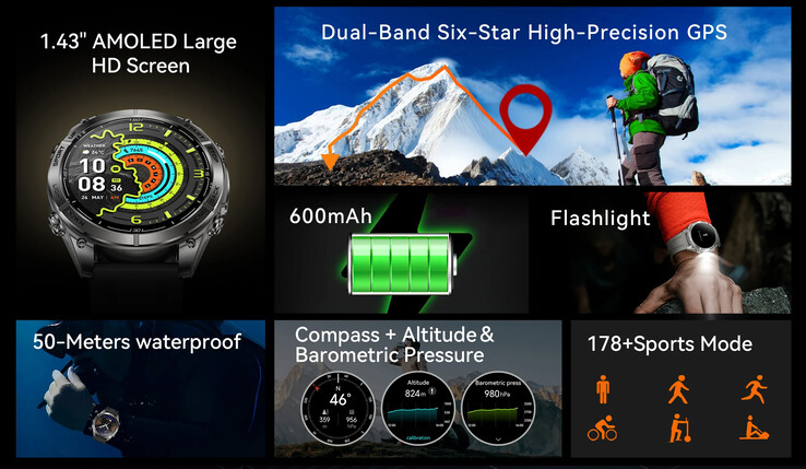 Neben einem 1,43 Zoll AMOLED-Display wartet die Rollme Navis auch mit einem 600 mAh großen Akku auf, der laut Herstellerangaben bis zu 20 Tage bei normaler Nutzung halten soll. Als Gesundheitsfeatures bietet die Smartwatch neben rund 180 Sportmodi auch die Überwachung von Herzfrequenz, Sauerstoffgehalt im Blut (SpO2), Schlaf und Stress. Über deren Genauigkeit gibt es keine Erkenntnisse. Dazu runden lokale Musikwiedergabe via Bluetooth-gekoppelter Kopfhörer, personalisierte und KI-generierte Zifferblätter, eine kleine Taschenlampe und weitere Features die Ausstattung der Rollme Navis ab.