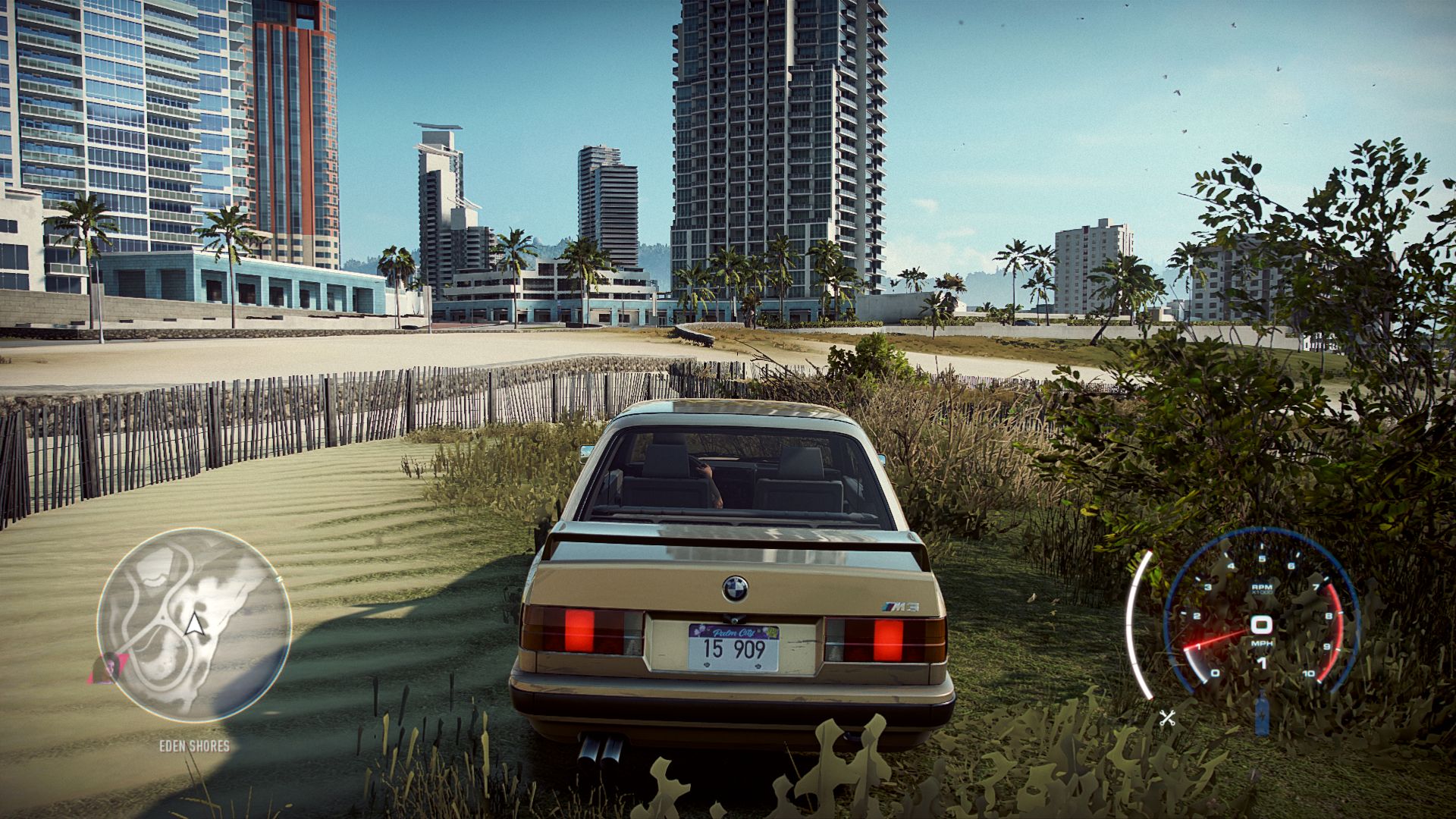 Da Heat auf DirectX 11 und nicht auf DirectX 12 vertraut, lassen sich Geschwindigkeitsmessungen problemlos mit dem bekannten Tool Fraps durchführen. Wie Sie im unteren Video sehen können, nutzen wir als Benchmark-Sequenz kein fertiges Rennen, sondern eine individuell festgelegte Strecke durch die Stadt. Zuerst wird das Auto per Schnellreise zum Part Shop teleportiert, den man kurz nach Spielbeginn freischaltet. Daraufhin öffnen wir erneut die Map und setzen einen Wegpunkt zum Rundenkurs Tornado, der ebenfalls kurz nach dem Start der Kampagne zugänglich wird.