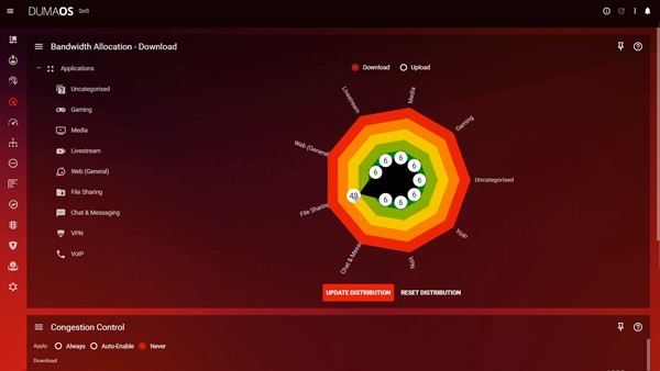 Unter anderem soll der Nutzer mit DumaOS 3.0 von einer verbesserten Bandbreitenzuweisung (QoS), Geo-Fencing mit individuell definierbaren Ankerpunkten und einem Traffic Controller profitieren, der den Netzwerkverkehr bestimmter Geräte oder Anwendungen blockieren kann. Eine Ping-Heatmap zeigt die Verbindungsqualität zu Spielservern an, der Connection Benchmark testet die Geschwindigkeit, Ping-Rate und Leistung der Verbindung unter höchster Belastung.