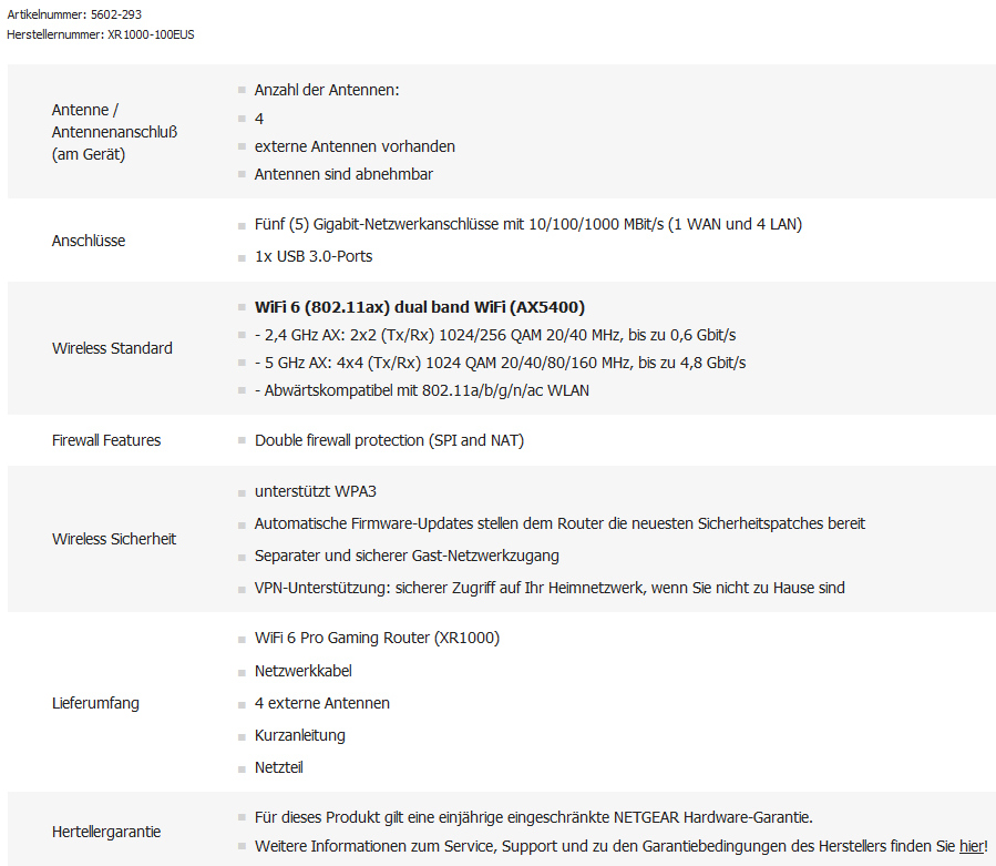 Netgear stellt für den Markt der bei Konsolen- und Computerspielern beliebten Gaming-Router den brandneuen Nighthawk Pro Gaming XR1000 WiFi 6 Router vor. Der WiFi 6 Nighthawk Pro Gaming XR1000 ist ab sofort zu einem empfohlenen Verkaufspreis von rund 350 Euro erhältlich. Bei Händlern wie beispielsweise Cyberport oder Computeruniverse ist der Gaming-Router aktuell allerdings für 370 Euro und damit teurer gelistet.