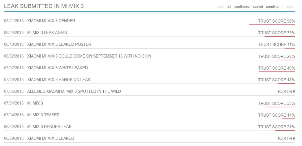 Ein gutes Beispiel sind die in letzter Zeit immer wieder mal aufpoppenden Bilder zum nächsten großen Ding von Xiaomi, nein die Rede ist nicht vom praktisch bereits verfügbaren Pocophone F1, sondern vom großen Designupdate des Mi Mix 2S in Form des Mi Mix 3. Gerüchteweise soll das neue Flaggschiff ja am 15. September starten, glaubt man einem geleakten Teaserposter, das allerdings höchstwahrscheinlich ebenfalls Fake ist, genauso wie die bereits enttarnten Realbilder, die allesamt mit Photoshop bearbeitet wurden. Eine gute Übersicht über alle bisherigen Mi Mix 3-Leaks liefert Slashleaks - die Bewertungen der Glaubwürdigkeit fällt leider durch die Bank verdammt niedrig aus: