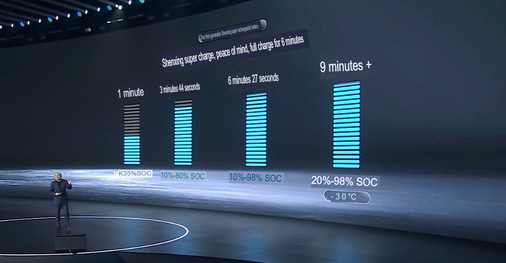 Dank mehrerer Neuerungen, darunter einer um 20 Prozent verbesserten Kühleffizienz, lädt die Shenxing 3 LFP-Batterie zum Beispiel in nur einer Minute von 10 Prozent auf 35 Prozent, erreicht 80 Prozent in 3 Minuten und 44 Sekunden und kommt in 6 Minuten und 27 Sekunden auf 98 Prozent. Das entspricht einer dauerhaft möglichen Ladegeschwindigkeit von 10C, die laut CATL in der frühen Ladephase kurzzeitig auf 15C steigen kann.