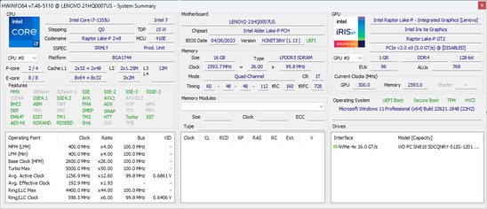Unsere Testeinheit entspricht der mittleren Konfiguration, in ihr rechnet ein Core i7-1355U, dazu gibt es einen matten 16:10-IPS-Touchscreen in der Auflösung 1.920 x 1.200p. Das Paket kostet etwa 2.400 Euro. Während die Modelle mit Core i5-1335U eher das Lower-End darstellen, gibt es noch die Higher-End-Konfigurationen mit dem schnelleren Core i7-1370P sowie einem 2.400p-OLED-Panel und Nano-SIM. Letztere sind in Deutschland jedoch noch nicht verfügbar, die Preise noch nicht einsehbar. Alle SKUs sind ausschließlich mit der integrierten Iris Xe Graphics erhältlich.