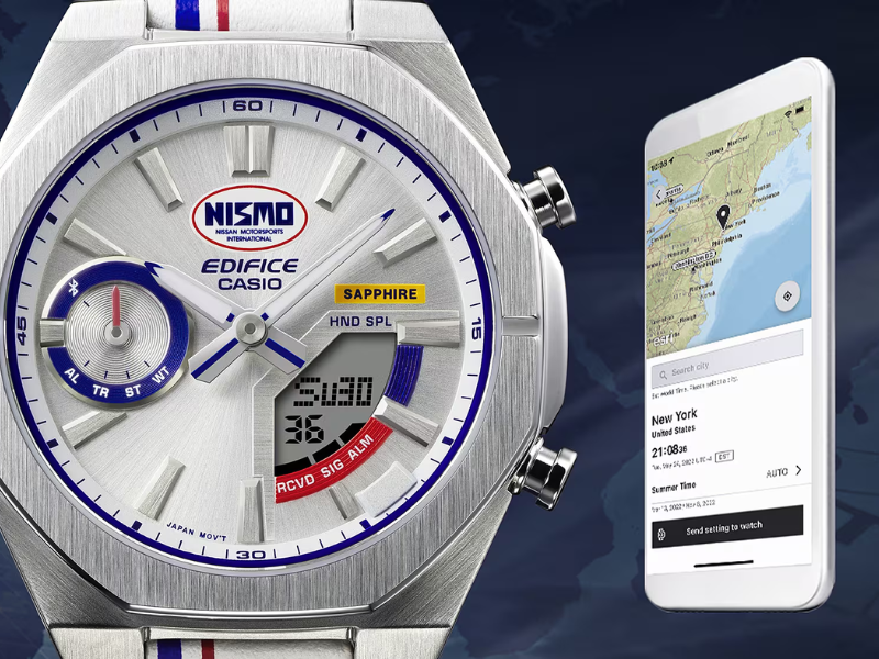Ausgestattet mit Bluetooth-Konnektivität ist die Edifice ECBS10NIS-7A ein Smartphone-Link-Modell. Über die Casio Watches-App können Nutzer Funktionen wie Handy-Finder und automatische Zeiteinstellung nutzen. Auf der Uhr stehen außerdem ein Countdown-Timer, stündliche Zeitsignale, tägliche Alarme und eine Stoppuhr zur Verfügung. Nutzer können zwischen 38 Zeitzonen wählen. Die Hybriduhr verfügt über zwei analoge Zeiger, während das Datum auf einer kleinen Digitalanzeige dargestellt wird. Einzelheiten über eine mögliche Markteinführung der Casio Edifice x Nismo ECBS10NIS-7A in Großbritannien sind noch nicht bekannt.