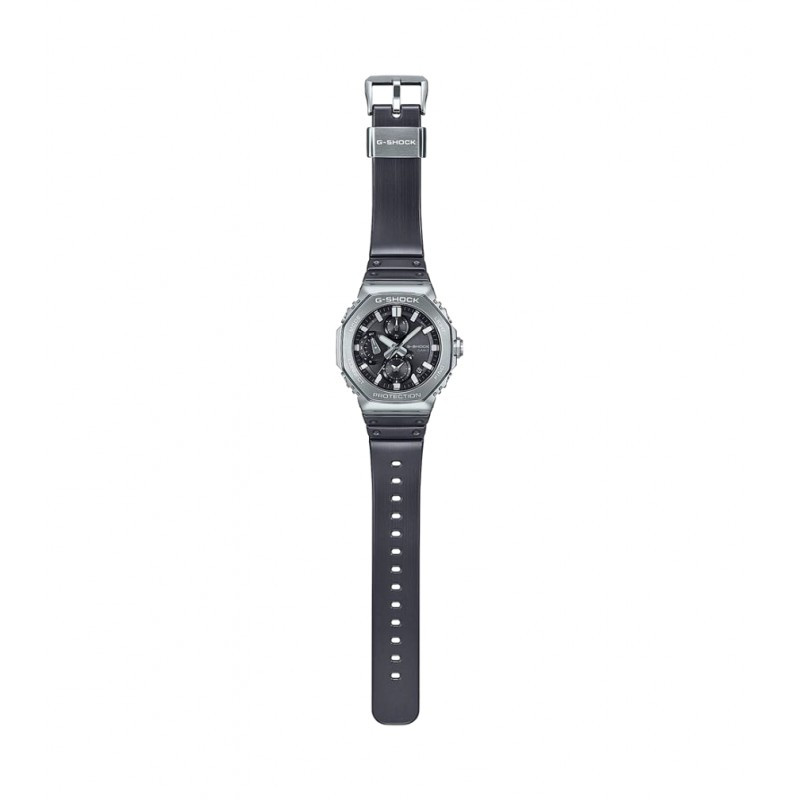 Die GMC-B2100Y-1AER bleibt den typischen G-Shock-Werten treu: 20 bar Wasserdichtigkeit, Stoßfestigkeit und ein Edelstahlgehäuse mit der markanten achteckigen Lünette. Zu den wichtigsten Funktionen zählen Bluetooth-Synchronisierung, Weltzeit, Alarme, LED-Beleuchtung sowie ein solarbetriebenes Quarzwerk. Die Hilfszifferblätter des Chronographen sind nahtlos ins Design eingebettet und sorgen für eine aufgeräumte Optik.