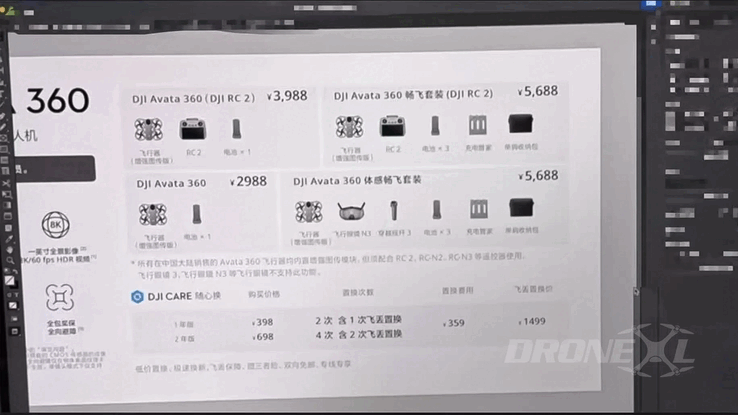 Insofern ist fraglich, ob die bisher kommunizierten Preise überhaupt realistisch sind. Jasper erwartet dagegen sehr konkurrenzfähige "Killerpreise" von knapp 500 US-Dollar für die Drohne selbst beziehungsweise 700 US-Dollar im Bundle mit der DJI RC 2 oder 1.000 US-Dollar in der Fly More Combo mit RC 2. Für ein Goggles N3 Paket muss man seiner Einschätzung nach etwa 1.200 US-Dollar einplanen. Seine Spekulation basiert allerdings auf einem geleakten Promo-Bild aus dem Januar (siehe unten), das auch 8K/60 HDR-Panorama-Videoaufnahmen bestätigt.