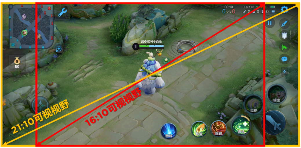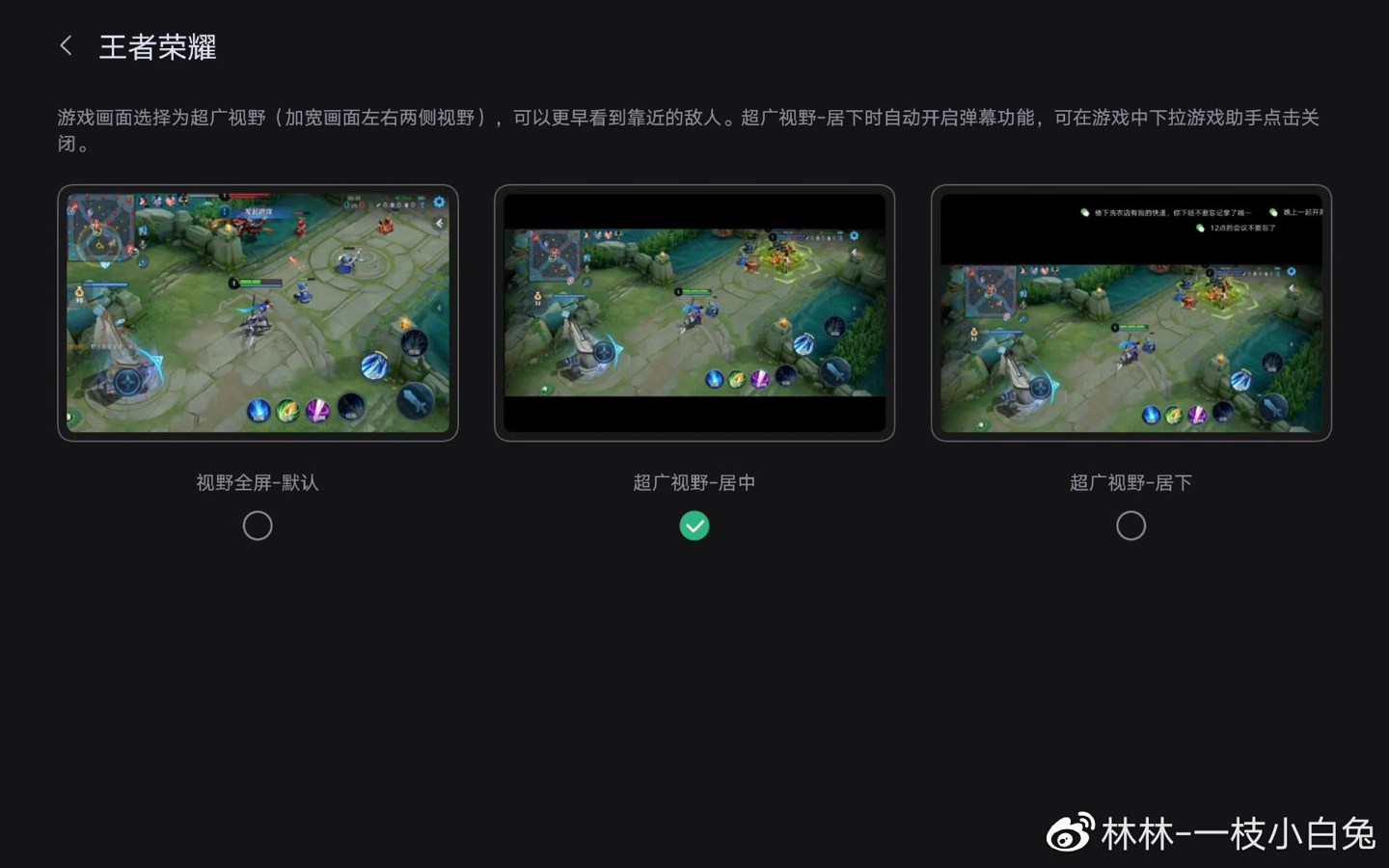 Ein weiterer Weibo-Eintrag enthüllt nun aber zumindest ein interessantes Feature, nämlich einen 21:10-Modus für Spiele, die ein derartiges Seitenverhältnis unterstützen. In diesem Modus sind zwar schwarze Balken über und unter dem Spiel zu sehen, dafür kann ein größeres Sichtfeld dargestellt werden, was gerade in kompetitiven Spielen wie League of Legends vorteilhaft sein kann. Der Nutzer hat dabei die Wahl, ob das Bild mittig oder am unteren Ende des Displays dargestellt wird.