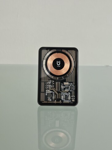 Die RealPower PB-5000 MAG Watch ist eine weitere Powerbank auf dem Markt, die allerdings zwei Besonderheiten aufweist. Zum einen präsentiert sie sich nicht im klassischen Plastikgewandt, wie es die meisten mobilen Ladelösungen tun. Stattdessen fällt sie mit einer transparenten Front auf, die einen Blick auf das Innenleben in edlen Metalltönen zulässt.