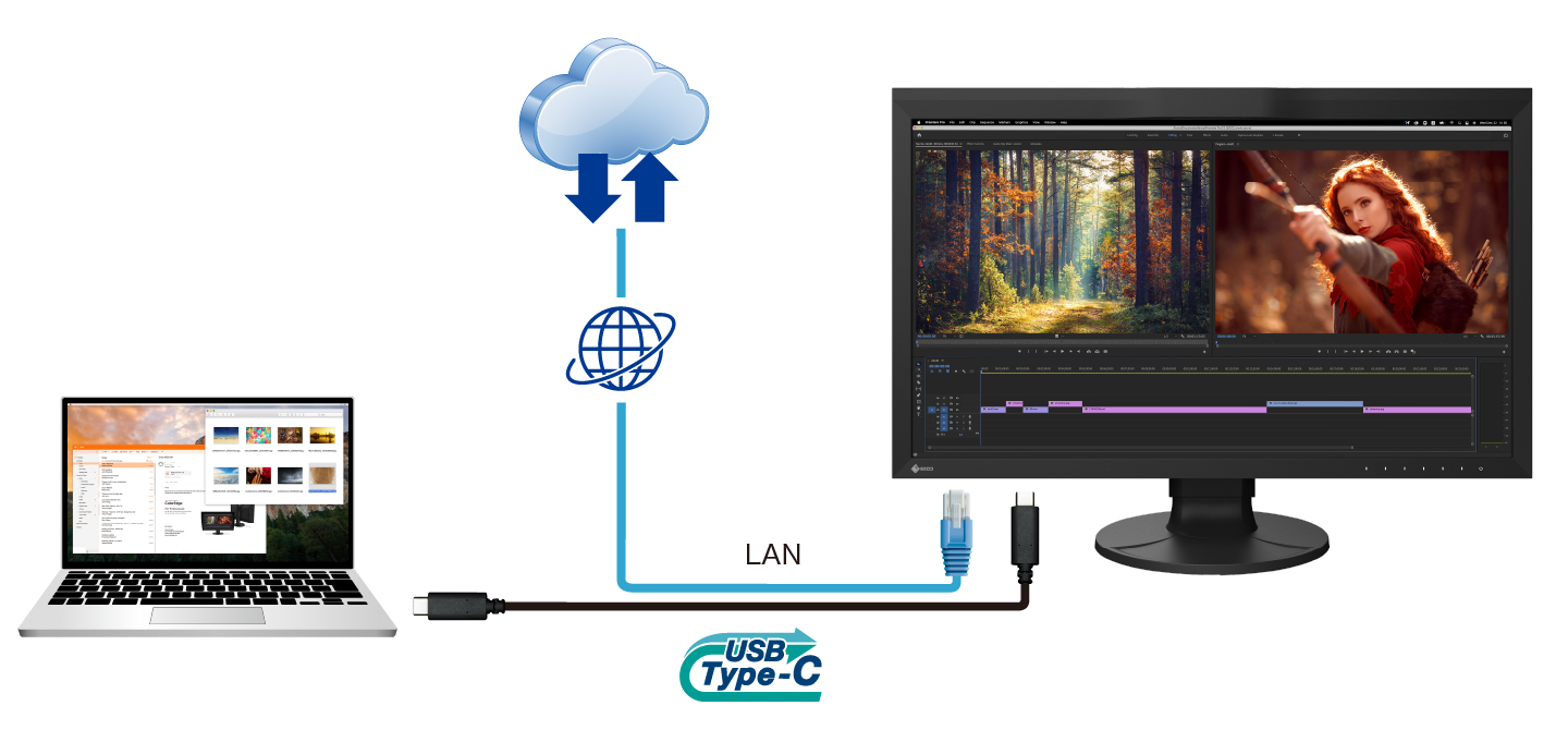 Während der CG2700X mit einer UHD Auflösung aufwartet, bekommt der CG2700S ein 2K Panel spendiert, ansonsten teilen sich beide Modelle die technische Ausstattung. Neben allen gängigen Monitoranschlüssen stattet Eizo die Neuzugänge im Produktportfolio mit einem USB-C-Anschluss aus, welcher neben dem Displaysignal auch Strom liefert (CG2700X bis zu 94W, CG2700S 92W) und den geneigten Nutzer mit zusätzlichen USB-Anschlüssen am Monitor versorgt. Ein Novum stellt auch der LAN Anschluss dar, welcher den Monitor für kompatible Notebooks/Tablets mit nur einem Kabel durchaus zu einer vollwertigen, kreativen Dockingstation aufwertet.