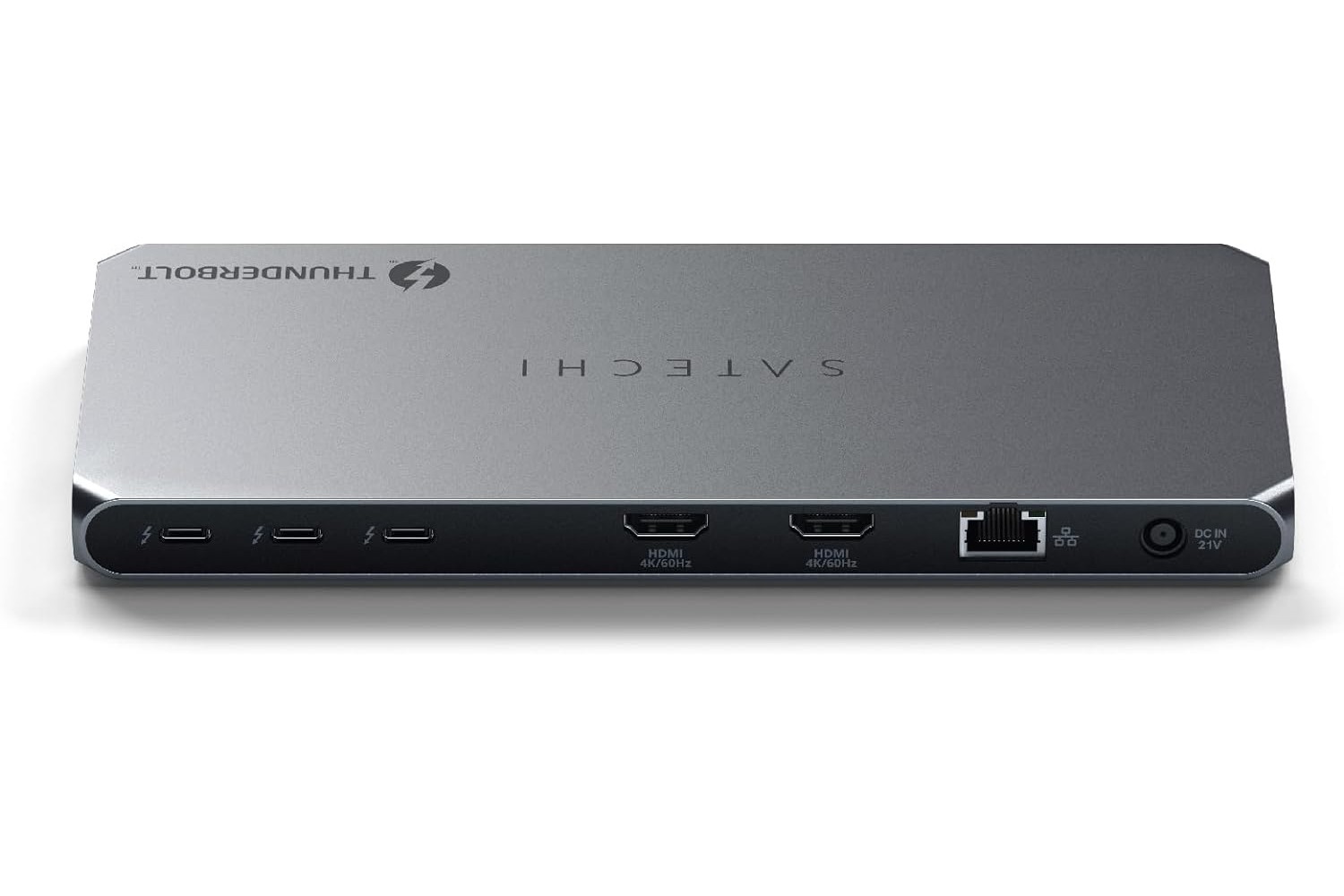 Insgesamt verbaut Satechi in der neuen Thunderbolt 4 Docking Station sogar drei Thunderbolt 4-Ports. Sie ermöglichen Datenübertragungen mit bis zu 40 Gbit/s. Das Gerät unterstützt Daisy-Chain mit bis zu sechs Geräten und Datentransfergeschwindigkeiten bis zu 32 Gbit/s für externe Grafikkarten und Thunderbolt-basierte SSDs. Dazu stehen zwei USB-A 3.2 Gen 2-Anschlüsse mit bis zu 10 Gbit/s zur Verfügung.