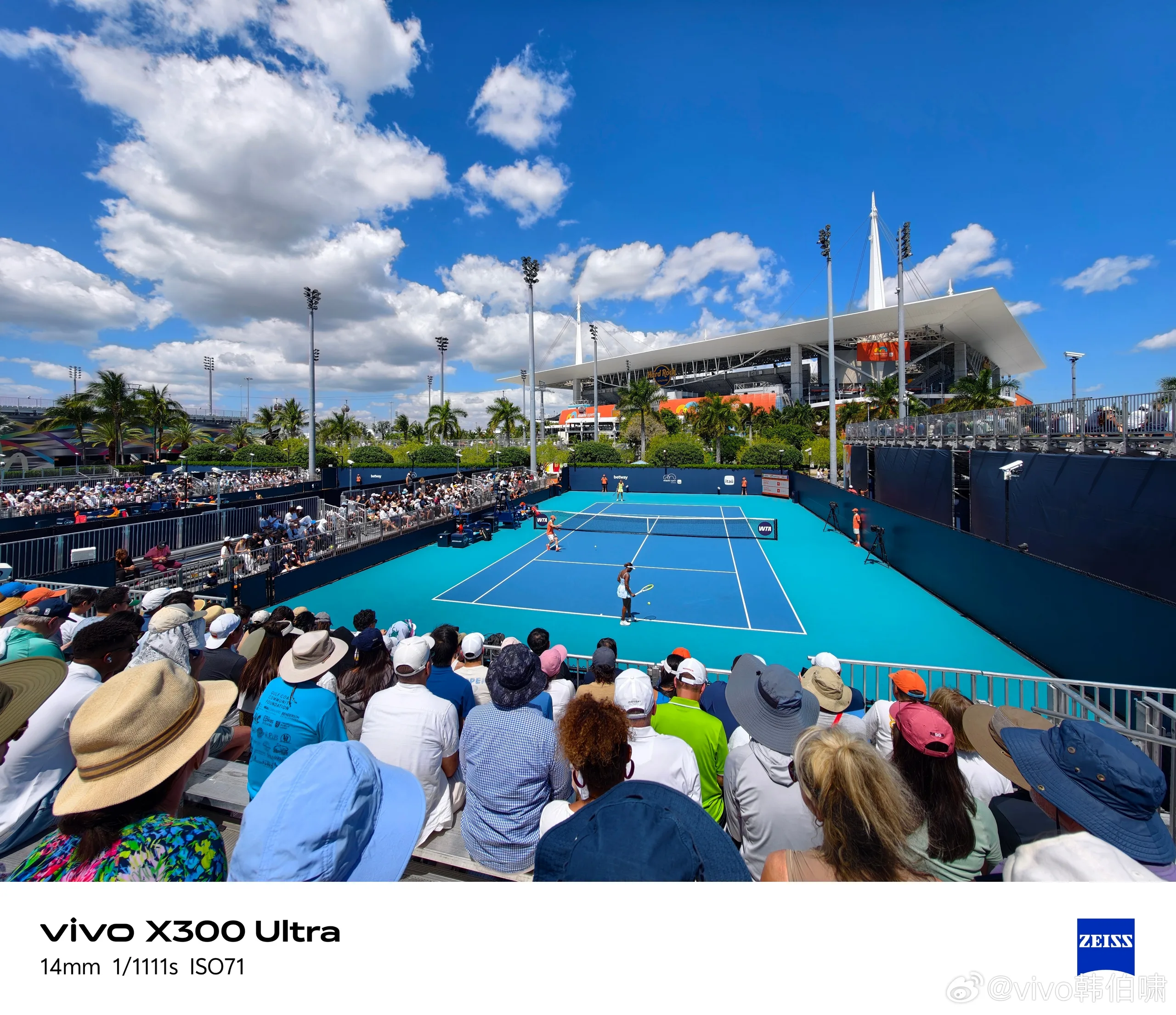 Nachdem wir bereits eindrucksvoller Konzertaufnahmen mit dem 400mm Telekonverter gesehen haben, kam das Vivo X300 Ultra nun auch bei den Miami Open Wettbewerben zum Einsatz, wo eine der Spielerinnen aus weiter Entfernung mit dem optischen Tele fotografiert wurde.