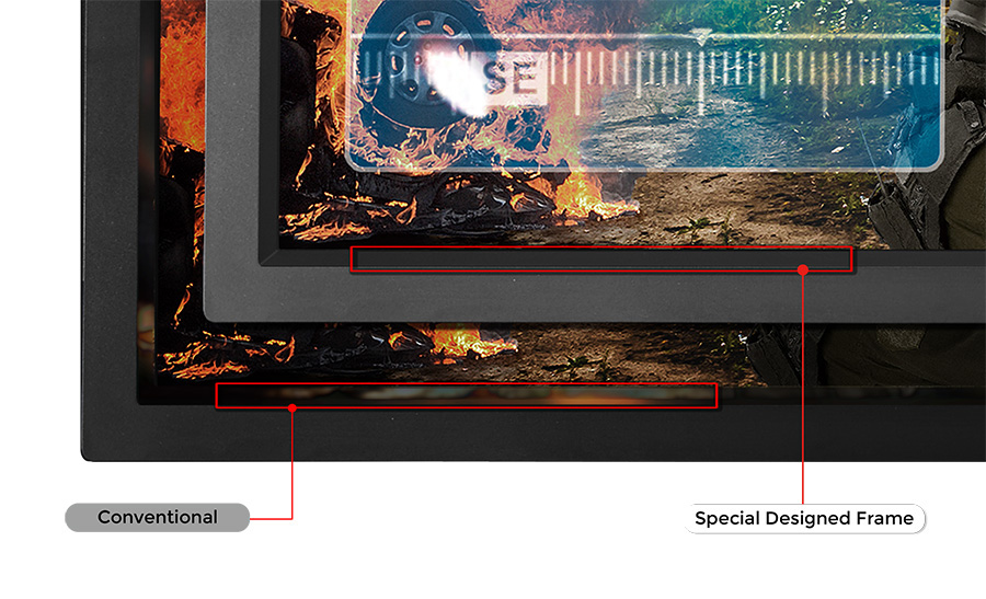 Entgegenkommend ist auch die Detailverliebtheit, die in diesem Monitor steckt. Die Seitenkanten des inneren Displayrahmens bestehen aus einem nicht reflektierenden Kunststoff. Und die sogenannten verstellbaren Fokusblenden lenken die Aufmerksamkeit ausschließlich auf den Monitor und das Spiel, auch schützt es sowohl vor neugierigen Blicken, als auch vor seitlichen Sonnenstrahlen. Die Blenden lassen sich natürlich abmontieren. Ein weiteres Detail ist der “S-Switch”, mit dem auf Tastendruck zwischen den gespeicherten Profilen gewechselt werden kann.
