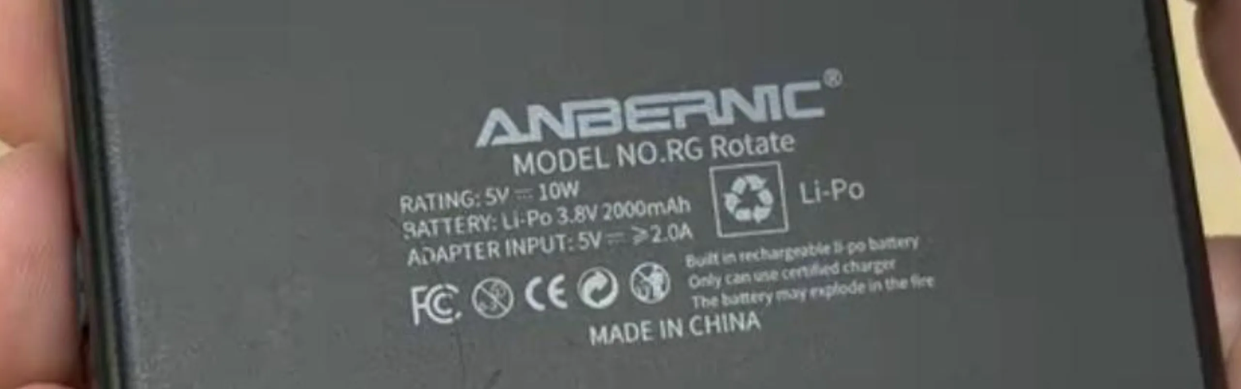 Das unten eingebettete Bild bestätigt zudem, dass der RG Rotate über einen 3,8-V-Akku mit einer typischen Kapazität von 2.000 mAh verfügen wird. Überraschenderweise ist dieser kleiner als die Akkus im RG34XX SP oder RG35XX SP (derzeit ca. 105 Euro bei Amazon). Der RG Rotate wird jedoch 10-W-Laden bei 5V/2A unterstützen. Somit sollte der RG Rotate nicht unter denselben Ladeproblemen leiden wie die günstigeren Handhelds von Anbernic, die bei maximal 5V/1,5A liegen.