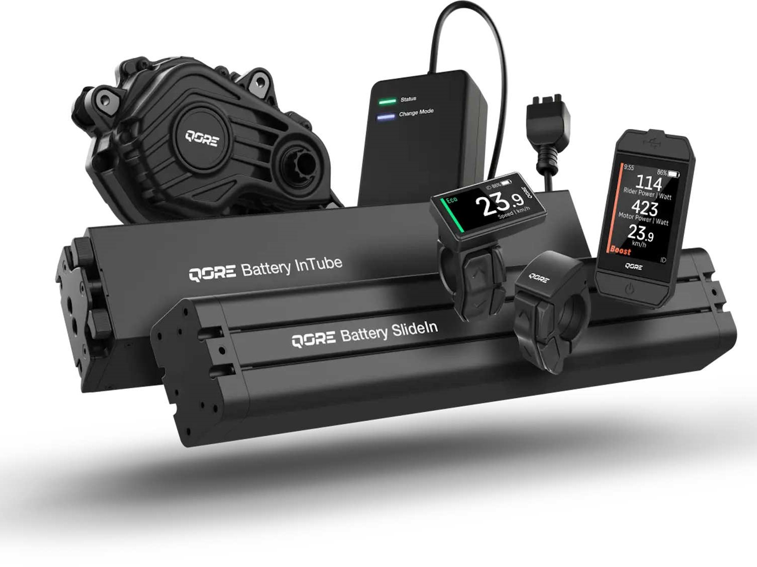 Geben soll es das System zumindest anfangs mit zwei Akkus, konkret mit 800 und 650 Wh, wobei diese mit einer besonders hohen Energiedichte kommen sollen. Es handelt sich um längliche Akkus, welche dann wie üblich in den Rahmen und speziell das Unterrohr integriert werden könnte. Bereits jetzt geplant ist eine noch kleinere Akkuversion mit 500 Wh, zudem dürfte es perspektivisch noch einen Range Extender geben. Die Akkus mit 800 und 650 Wh kommen schon mit einer höheren Kapazität, auch dies zählt dann letztlich auf das Gewicht ein. Brose hat auch schon eine Bedieneinheit gezeigt. Diese hört auf den Namen Control Allround und soll eine ergonomische Gestaltung bieten und ohne Barrieren bei der Bedingung kommen, so lässt sich die Display-Farbe und die Kontraste einfach auswählen. Auch zusätzliche Display-Typen soll es geben, die Integration von Produkten von Drittanbietern soll möglich sein - damit lässt sich etwa ein ABS-System anbinden, aber auch eine elektrische oder dann möglicherweise noch automatische Schaltung. GPS können im Prinzip ebenfalls integriert werden.