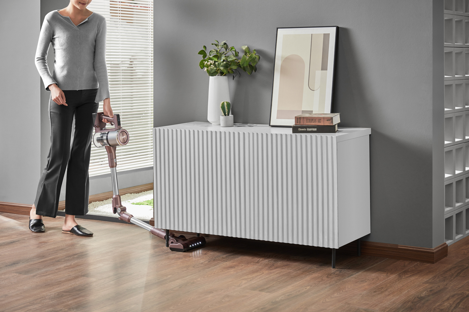 Nach getaner Arbeit bzw. maximal 180 Minuten Akkulaufzeit kehrt der Saugroboter zu seiner Basisstation zurück. Diese lädt ihn nicht nur, sondern leert auch den 200 ml kompakten Staubbehälter des Roboters mit Mehrfach-Zyklon-Technologie in einen großen und transparenten Sammelbehälter mit 1,5 L Volumen. So wird bis zu 45 Tage automatische Reinigung ohne Eingreifen ermöglicht.