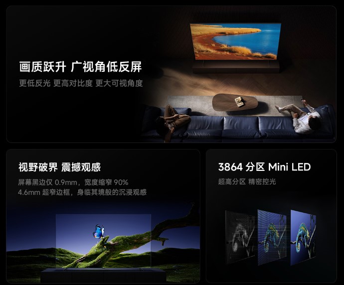 Xiaomi hat einen neuen Fernseher vorgestellt, wobei die Modelle der Xiaomi TV S Pro Mini LED-Serie (2026) auch in Deutschland nicht unbekannt sind. Die Neuvorstellung kommt dabei aber mit einer Bildschirmdiagonalen von stolzen 98 Zoll - größere TV-Geräte gibt es kaum noch, wünschen Nutzer eine noch größere Bilderfahrung, wird dann der Griff zum Beamer eher geboten. Angegeben wird eine Spitzenhelligkeit von 5.700 cd/m², wobei diese eben nicht dauerhaft beziehungsweise auf dem ganzen Bildschirm anzeigbar ist. Die Beleuchtung lässt sich in 3.864 Zonen steuern. Die Nutzung von Mini-LEDs zur Hintergrundbeleuchtung soll eben eine stärkere Kontrastdarstellung erlauben, da so helle Bildbereiche stark und dunkle Bildbereiche deutlich weniger stark beleuchtet werden können. Diese Zahl der ansteuerbaren Beleuchtungszonen ist dabei durchaus ein Qualitätsmerkmal.