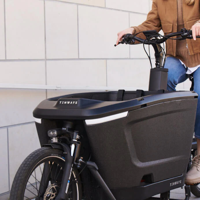 Das Tenways Cargo One ist ein klassisches Lastenrad mit einer großen Ladefläche bzw. Wanne vor dem Lenker. Diese weist ein Volumen von 800 Litern auf und kann vielseitig genutzt werden, z. B. mit einer Bank und Gurten für den Transport von Kindern sowie allerhand Dingen wie den Einkäufen und Co.