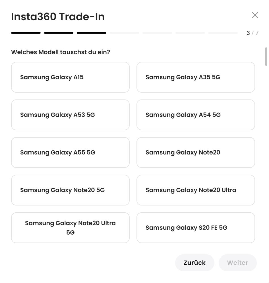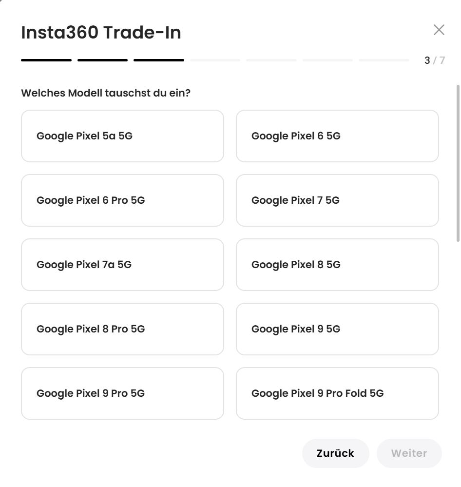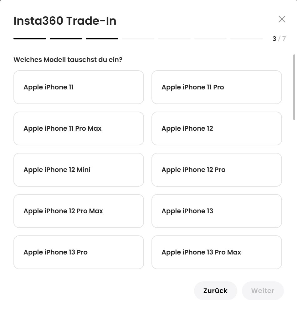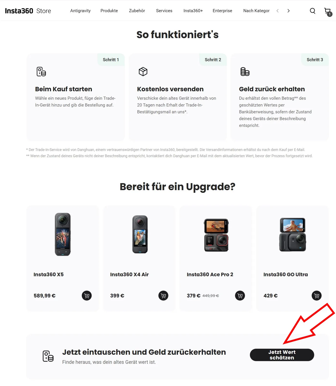 Als Trade-In-Partner gibt Insta360 das Unternehmen Danghuan an, eine Tochtergesellschaft des chinesischen Technologiekonzerns Oppo und handelt mit gebrauchten Elektronikprodukten. Höchst wahrscheinlich sollen ältere, aber funktionstüchtige Geräte aufbereitet und weiterverkauft werden. Dabei liegt es nahe, dass womöglich allzu ältere Serienmodelle nicht akzeptiert werden.