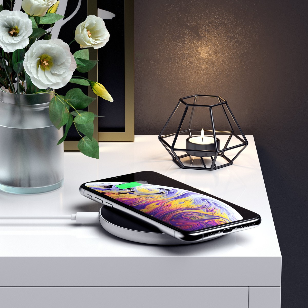 Die Ladestation kommt mit einem Aluminium-Gehäuse in Silber oder Space Grey, einer rutschfesten Oberfläche und einem spürbaren Kreuz, welches das richtige Platzieren des Smartphones einfacher machen soll. Eine LED an der Vorderseite zeigt den Ladestatus des Smartphone an.